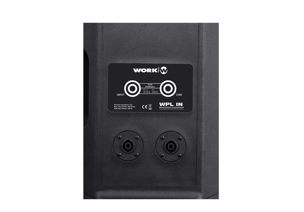 Loa WorkPro WPL In là loa thụ động hai đường tiếng, được cấu tạo từ củ loa bass 10” và một củ loa treble 1.3”.Loa WorkPro WPL In có mức công suất trung bình là 250W,cùng với mức trở kháng 8Ohm giúp bạn dễ dàng kết hợp chúng với các thiết bị âm thanh khác như cục đẩy, amply.