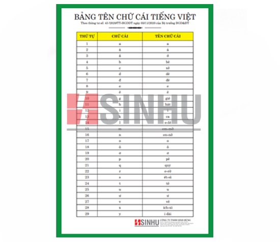 Bảng tên chữ cái tiếng Việt (QC: C200)