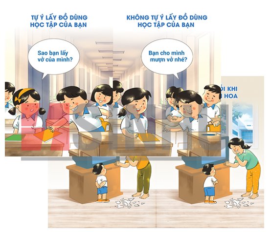 - Khi ở trường (tự ý lấy đồ dùng học tập của bạn);