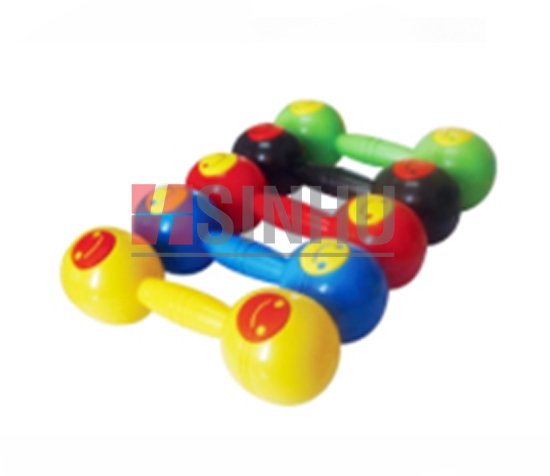 Hai bầu rỗng bằng nhựa có tay cầm, bên trong đựng những viên đá nhỏ.