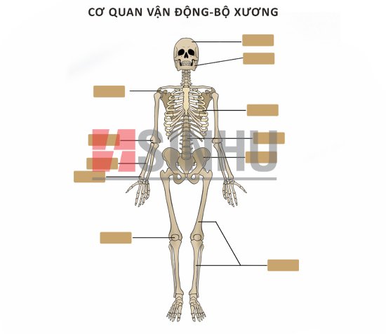 - Chất dẻo PVC; có giá đỡ; Tháo lắp được hộp sọ, xương tay (chỗ khớp vai), xương chân (chỗ khớp háng).